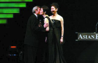 作為亞洲電影大獎(jiǎng)重量級(jí)頒獎(jiǎng)嘉賓,林青霞并未現(xiàn)身紅毯,在頒獎(jiǎng)禮臨近尾聲時(shí),林青霞一襲黑色長(zhǎng)裙優(yōu)雅亮相,為徐克和施南生創(chuàng)立的“電影工作室”頒發(fā)“杰出貢獻(xiàn)大獎(jiǎng)”。林青霞除了贊揚(yáng)徐克和施南生25年來對(duì)電影工作的貢獻(xiàn),還以“我的好朋友”稱呼徐克和施南生。雖然昔日的神仙眷侶徐克和施南生已經(jīng)離婚,但徐克在領(lǐng)獎(jiǎng)時(shí)深情地親吻施南生面頰,在場(chǎng)觀眾無不動(dòng)容。