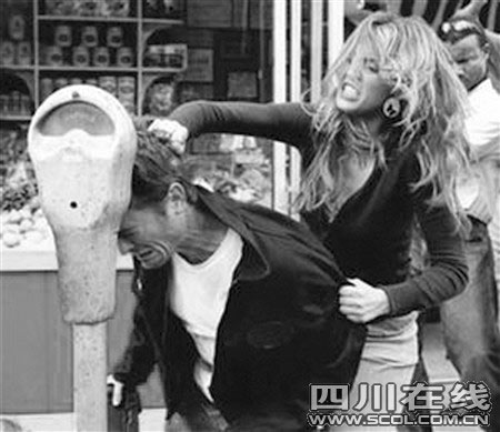 ▲2006年5月,好萊塢玉女杰西卡·阿爾芭為“MTV電影大獎”拍攝宣傳片,片中有一幕她忍無可忍狂毆狗仔的場景。