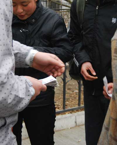 從趙焱手里領(lǐng)到錢的群眾演員小李告訴記者:“他問我有沒有吃飯,很關(guān)切的樣子,我說我好多天沒拍戲了,好久沒吃一餐飽飯了,他就給了我五十塊錢,讓我去吃個飽飯,今天下雪,我真是又凍又餓,這五十塊錢真是雪中送炭!”記者注意到,趙焱給每一個人發(fā)錢前都會與人聊幾句,似乎是了解情況,然后決定要給這個人發(fā)多少錢,一位只領(lǐng)到五塊錢的小伙子告訴記者:“他在發(fā)錢的時候,有個出租車司機也跑過來領(lǐng)錢,他就沒給人家!