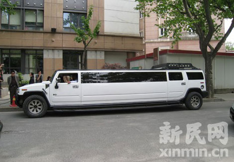簽約儀式設(shè)在汾陽路上,新民網(wǎng)記者抵達現(xiàn)場時,看到一輛加長版“悍馬”停在簽約現(xiàn)場的對面。由于汾陽路狹小,只有兩個車道,加長版“悍馬”又開過了,致使轉(zhuǎn)彎轉(zhuǎn)不過去!昂否R”停在路邊,需要等身后的車輛都開走才能往回倒,再轉(zhuǎn)進簽約現(xiàn)場。這樣一來,造成了汾陽路上的交通堵塞。