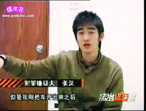 節(jié)目的字幕顯示,肇事者名叫“張漢”,這正是張翰在中戲就讀時使用的名字。而張翰在審訊室接受審問時也承認(rèn)了自己的過錯并描述事發(fā)經(jīng)過:“我只想讓他下去,我踩了三次剎車,我說‘你別拽我!’,我也怕他出事!彼麖娬{(diào),因為自己的情緒不佳才釀出事故:“因為當(dāng)時我情緒比較激動,有許多下意識的行為,當(dāng)時沒有想那么多,但是我剛把車子開出來(指把警察的手甩出窗外之后),就意識到事情鬧大了!