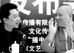 只要有郭德綱在的發(fā)布會(huì),記者們都不愁沒內(nèi)容寫,因?yàn)楣戮V會(huì)把說相聲的技能也帶到會(huì)上來,于是每次記者招待會(huì)就變成“逗樂會(huì)”,無論媒體拋出什么樣的問題,郭德綱都會(huì)妙語連珠給予回應(yīng)。