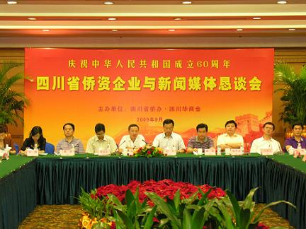 中新網(wǎng)9月10日電 “慶祝中華人民共和國成立60周年四川省僑資企業(yè)與新聞媒體懇談會(huì)”于9月3日在成都舉行,此活動(dòng)由四川省僑辦、四川華商會(huì)主辦,四川省部分僑資企業(yè)負(fù)責(zé)人與省市新聞媒體負(fù)責(zé)人和記者歡聚一堂,暢談偉大祖國成立60周年來的豐功偉績(jī)和僑資企業(yè)為四川省經(jīng)濟(jì)社會(huì)發(fā)展做出的貢獻(xiàn),共抒加強(qiáng)僑資企業(yè)與新聞媒體交流合作的友誼,探討新聞媒體走進(jìn)僑資企業(yè),共謀為四川省“加快建設(shè)災(zāi)后美好新家園,加快建設(shè)西部經(jīng)濟(jì)發(fā)展高地”作貢獻(xiàn)。