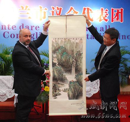 中新網10月28日電 據文成網消息,10月25日,由意大利米蘭市議會副議長迪•馬蒂諾•斯特法諾先生為團長的代表團共50人(其中米蘭市議會官員10人、藝術團40人)一行來浙江文成縣訪問考察。
