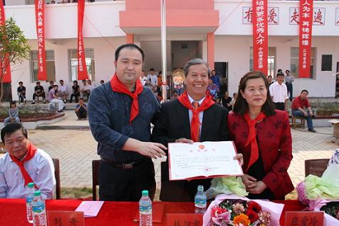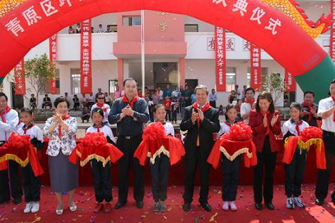 中新網(wǎng)11月4日電 據(jù)江西僑聯(lián)網(wǎng)站消息,2009年10月31日上午,江西省吉安市青原區(qū)富田鎮(zhèn)坪田小學(xué)鑼鼓陣陣,鞭炮長鳴,五顏六色的彩旗迎風(fēng)飄揚(yáng),同學(xué)們穿上了節(jié)日的盛裝,戴上鮮艷的紅領(lǐng)巾,臉上露出了燦爛的笑容,雙手興高采烈地?fù)]舞著美麗的鮮花,熱烈慶!凹訍蹆S心小學(xué)”的落成。