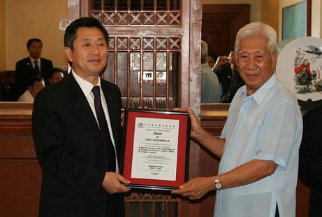 中新網(wǎng)11月25日電 據(jù)山東省僑辦消息, 11月23日,山東省僑務訪問團拜訪了中國駐菲律賓宿務領事館,與總領事何時敬舉行了座談,并向領事館贈送了紀念品。隨后訪問團前去拜會了宿務菲華商會,該會理事長林倫超及各位理事熱情接待了訪問團一行。