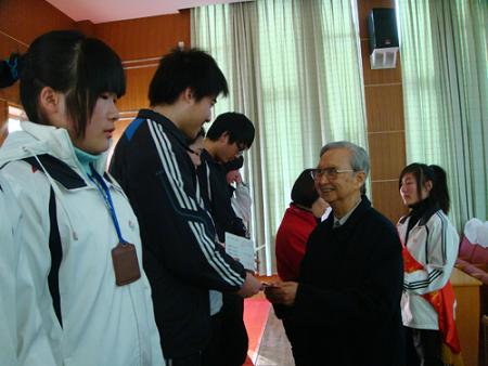 中新網(wǎng)2月1日電 據(jù)浙江僑聯(lián)網(wǎng)消息,1月26日,浙江省愛(ài)鄉(xiāng)楷模、寧波市榮譽(yù)市民、原香港遠(yuǎn)東紡織有限公司董事長(zhǎng)包景表先生一行在寧波市鎮(zhèn)海區(qū)僑聯(lián)主席顧燕華的陪同下專(zhuān)程來(lái)到鎮(zhèn)海區(qū)職教中心,為獲得第四屆“勵(lì)志獎(jiǎng)學(xué)金”的50名學(xué)生頒發(fā)獎(jiǎng)學(xué)金。