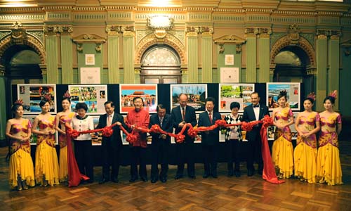 中新網(wǎng)2月21日電 2月20日,作為“文化中國(guó)·四海同春”系列文化活動(dòng)的重要組成部分,《中華民族全家!穲D片展在悉尼市政廳大劇院展出。出席觀看“四海同春”大型慰?jī)S文藝演出的2200位觀眾在演出前觀看了展覽圖片并紛紛拍照留念。國(guó)務(wù)院僑辦副主任趙陽(yáng)出席圖片展剪彩儀式并講話。
