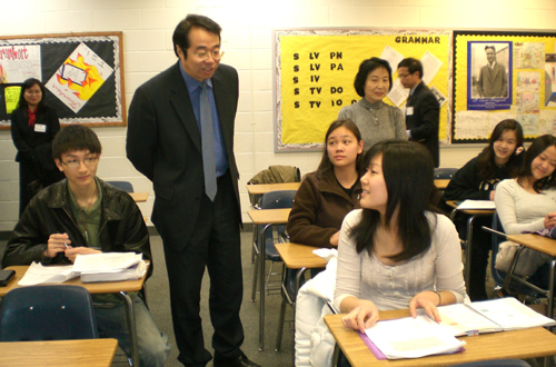 中新網(wǎng)3月2日電 2月28日上午,國(guó)務(wù)院僑辦副主任許又聲參觀了新澤西華夏中文學(xué)校的博根分校,并與該校教師進(jìn)行座談。