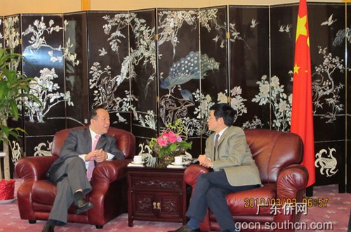 高占生對(duì)訪問(wèn)團(tuán)的到來(lái)表示熱烈歡迎,對(duì)廣東省僑辦多年來(lái)的海外僑務(wù)工作深表贊賞,并就吳銳成提出的相關(guān)問(wèn)題做了分析,提出了看法和建議,同時(shí)還就組織華僑華人回國(guó)看世博、看亞運(yùn)、社團(tuán)回鄉(xiāng)舉辦年會(huì)等進(jìn)行了具體的商談。