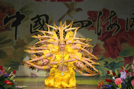 著名歌唱家劉斌、呂微為觀眾們演唱了《咱當(dāng)兵的人》、《茶花女》等家喻戶曉的經(jīng)典歌曲。維吾爾族舞蹈《頂碗舞》、哈薩克族舞蹈《可愛的一朵玫瑰花》展現(xiàn)了中國(guó)西域少數(shù)民族的優(yōu)美舞姿,“千手觀音”舞蹈為觀眾們送來了虔誠(chéng)的祝福,整場(chǎng)演出氣勢(shì)磅礴,觀眾如癡如醉,臺(tái)上臺(tái)下互動(dòng)不斷,高潮迭起。