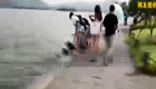 男子發(fā)現(xiàn)鴨子被凍湖面 跳湖破冰救援